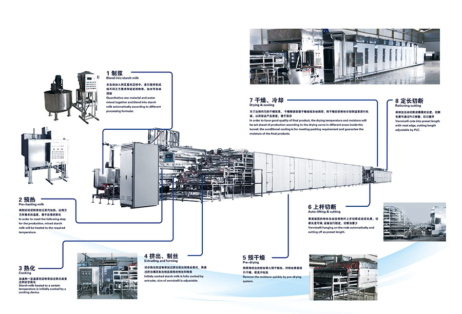 2、本生產(chǎn)線(xiàn)無(wú)需要水洗環(huán)節(jié),因此大大地節(jié)省水資源,且無(wú)須建立污水處理廠(chǎng), 解決了粉絲生產(chǎn)中的環(huán)保問(wèn)題;