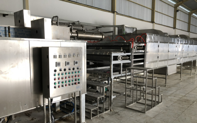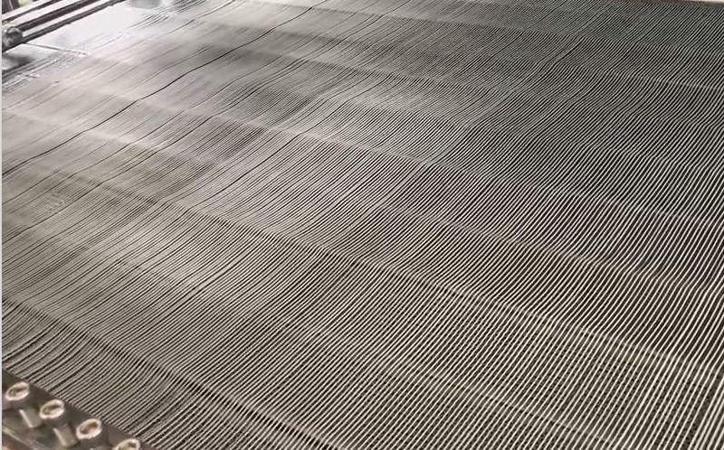 網(wǎng)帶將擠出的粉絲帶入預(yù)干燥機(jī),對(duì)粉絲表面進(jìn)行干燥,使其不粘連;