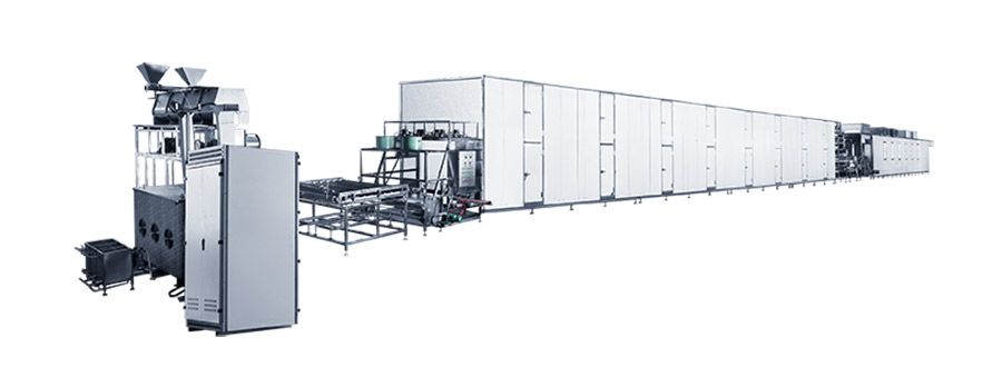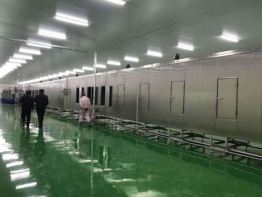為了達到均勻的干燥效果, 干燥隧道依據(jù)干燥曲線自動調(diào)控;將干燥后的米線冷卻到溫室進行包裝,從而保證產(chǎn)品質(zhì)量,便于保存;