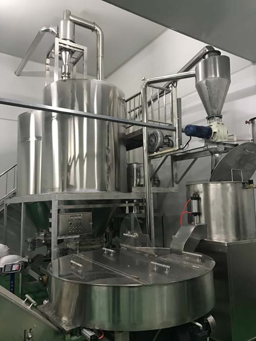 通過餳面機的不停攪拌使面團中的水分更均勻,并自動提升到下一工序, 設(shè)備可實現(xiàn)供料系統(tǒng)的自動控制;